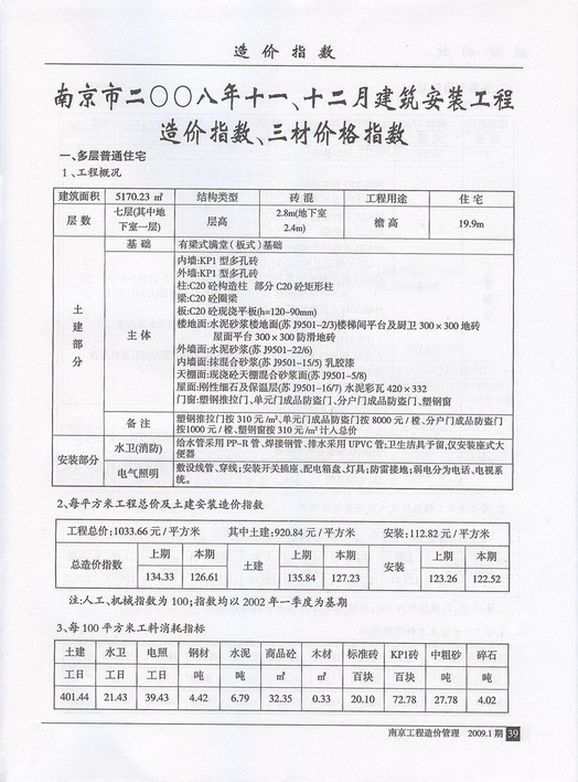 南京市2008年11、12月建筑安裝工程造價指數(shù)、三材價格指數(shù)