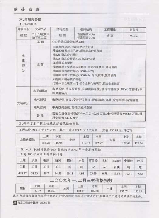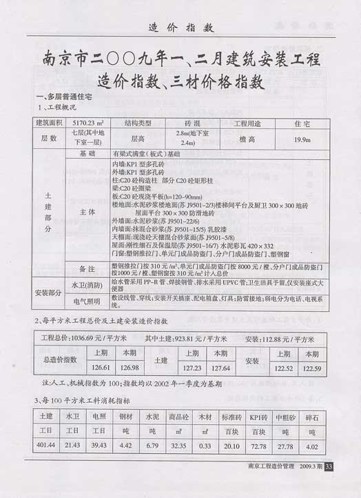 南京市2009年1、2月建筑安裝工程造價指數(shù)、三材價格指數(shù)
