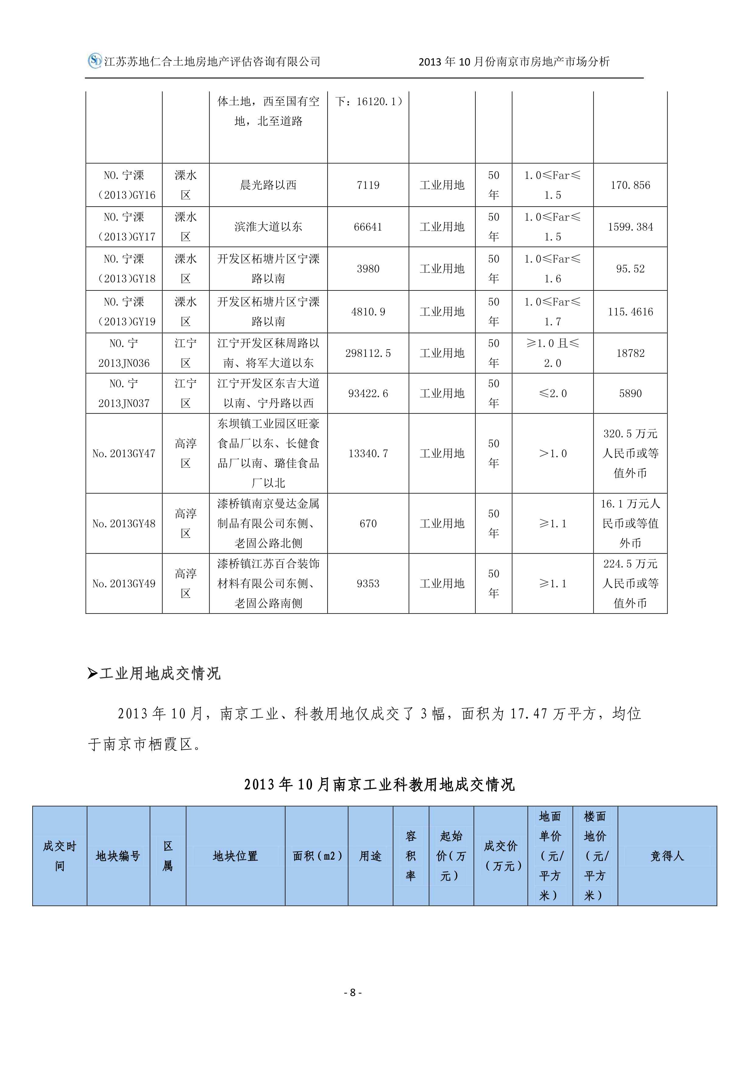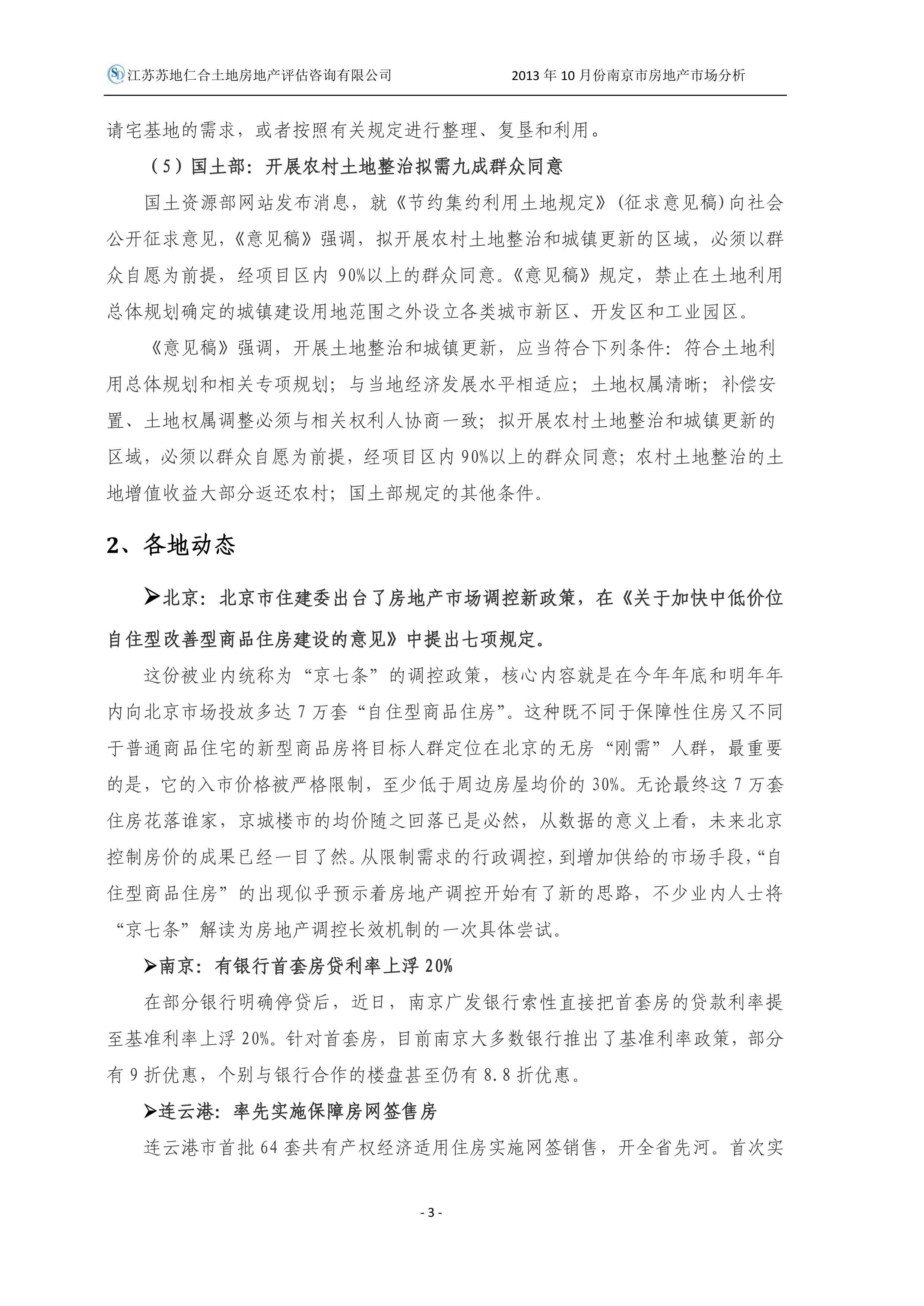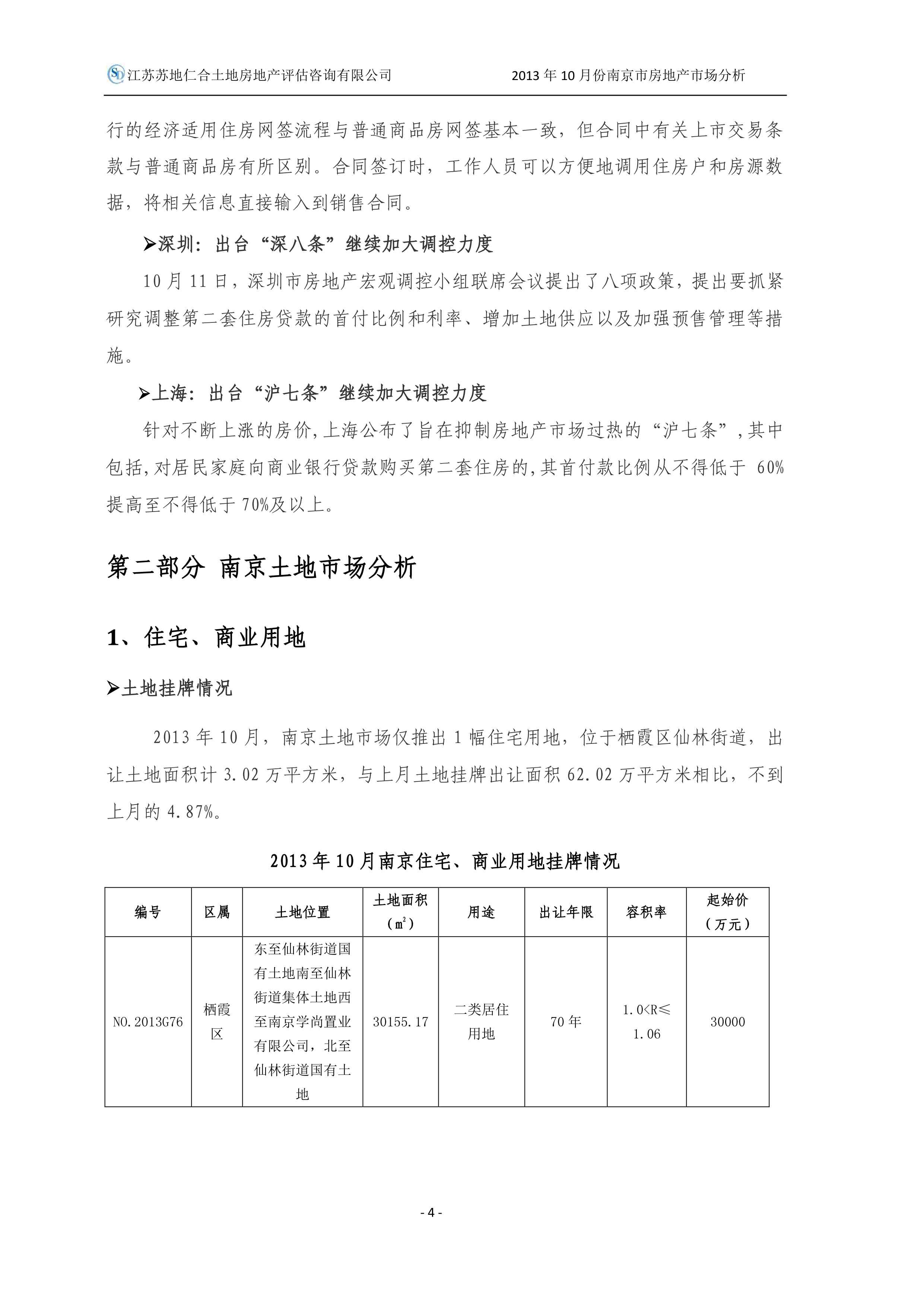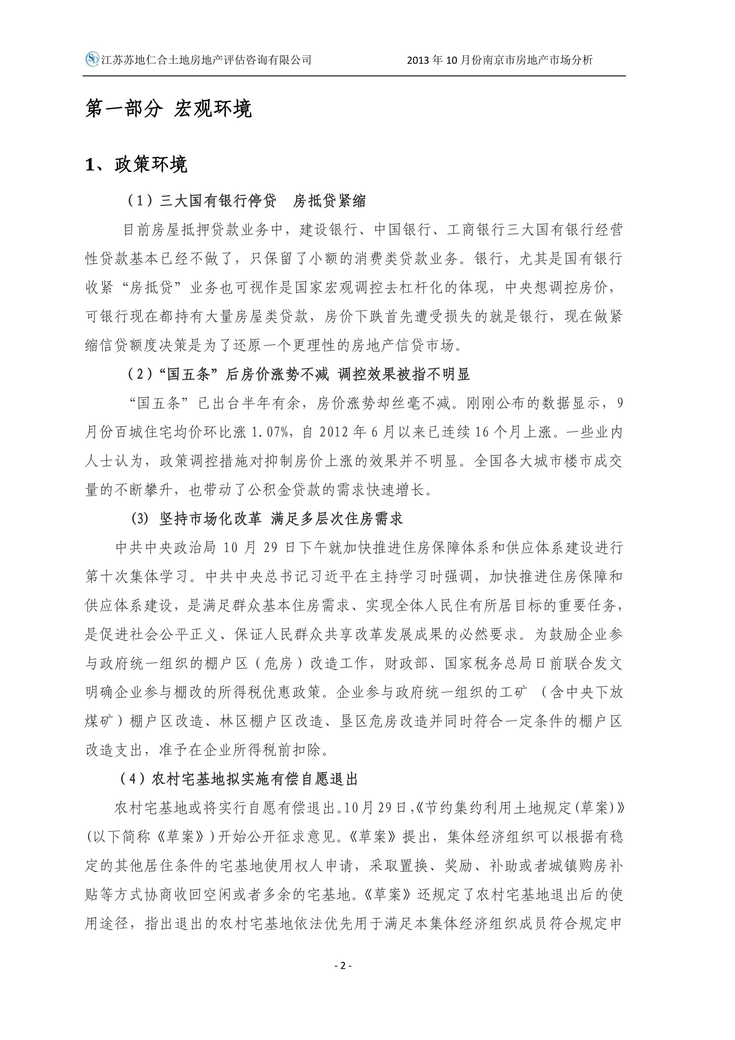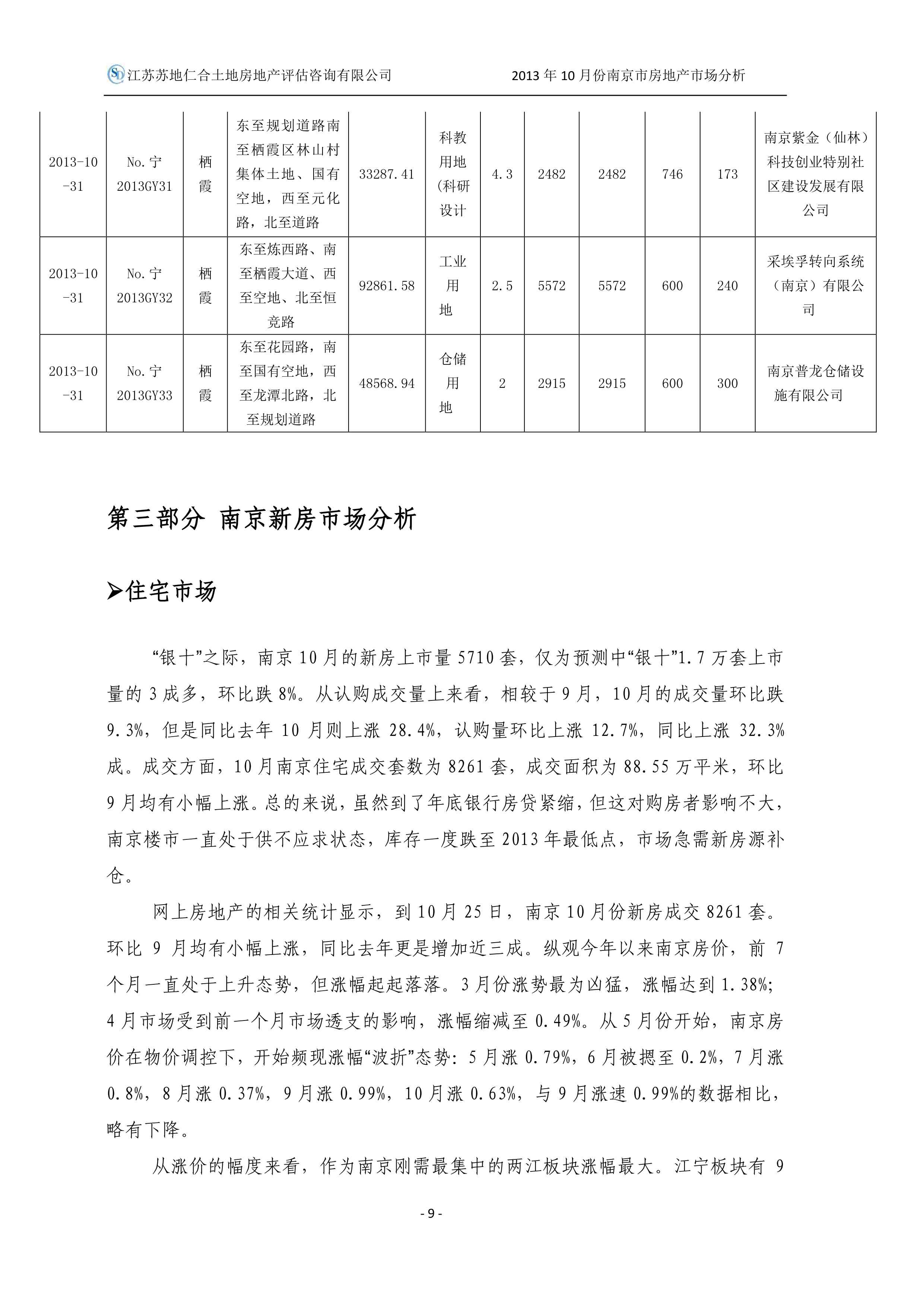 2013年10月南京市房地產(chǎn)市場分析