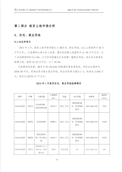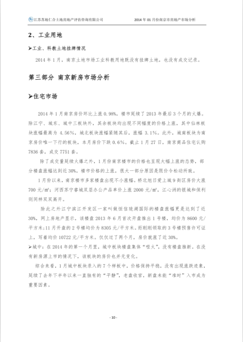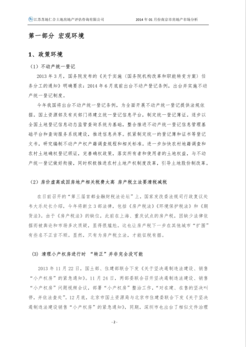 2014年1月房地產(chǎn)市場分析報告