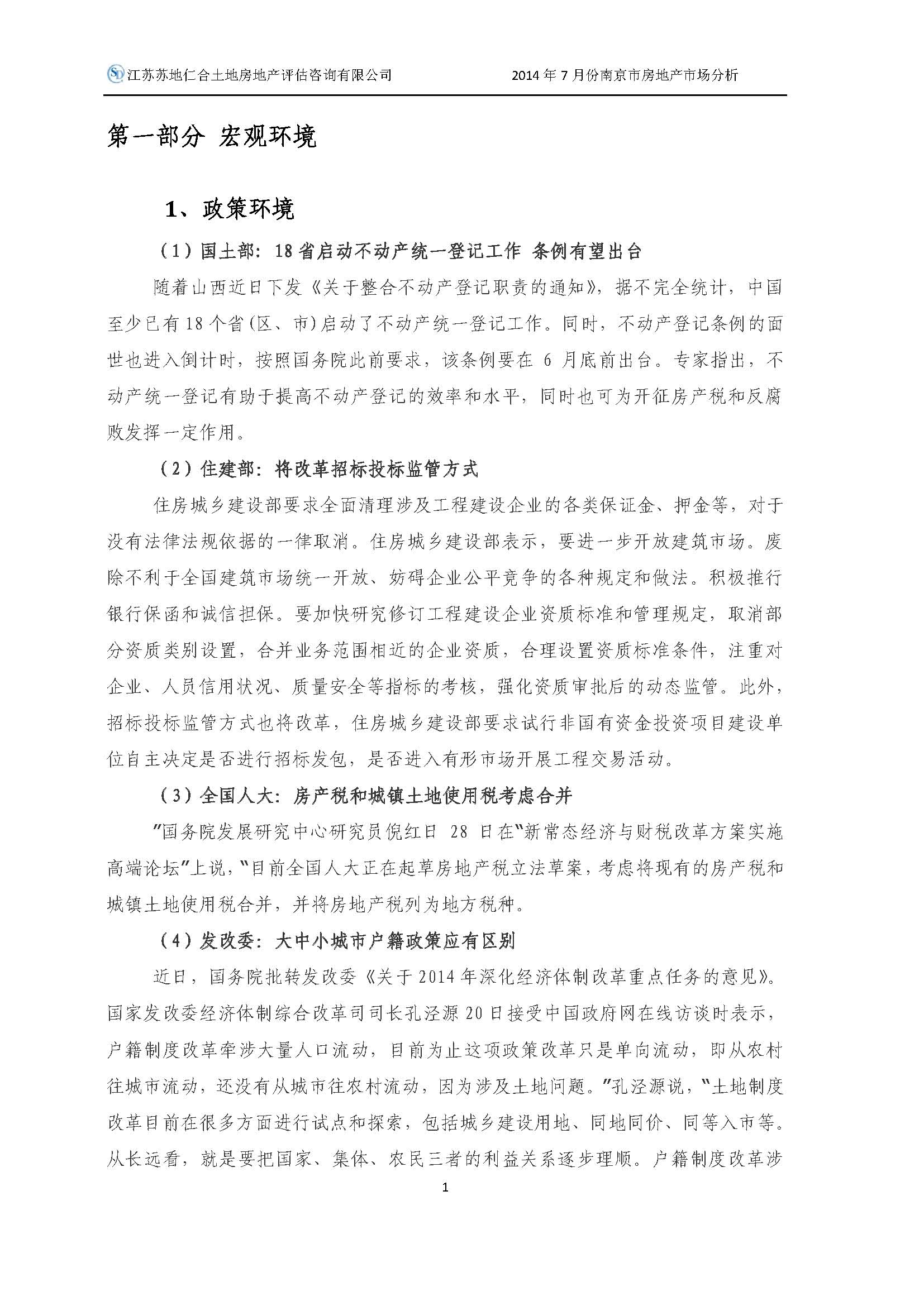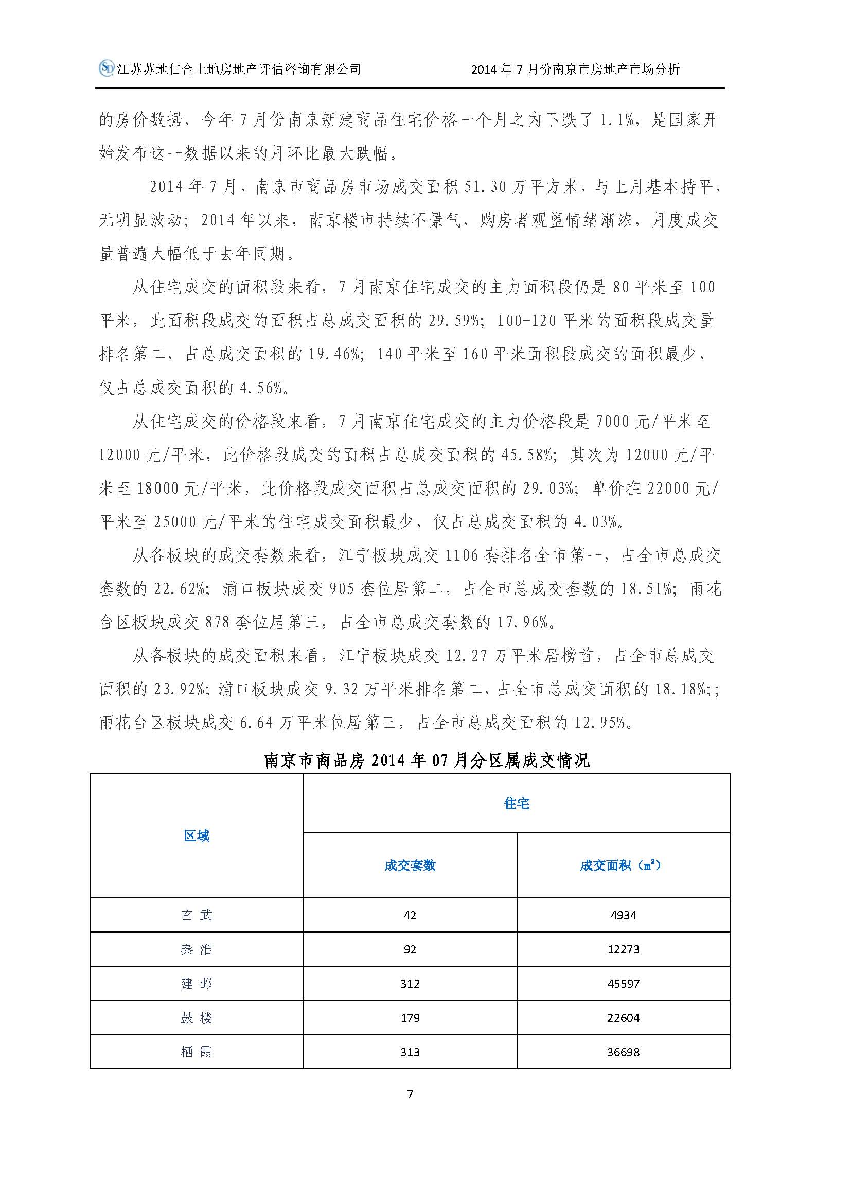 2014年7月南京市房地產(chǎn)市場(chǎng)分析