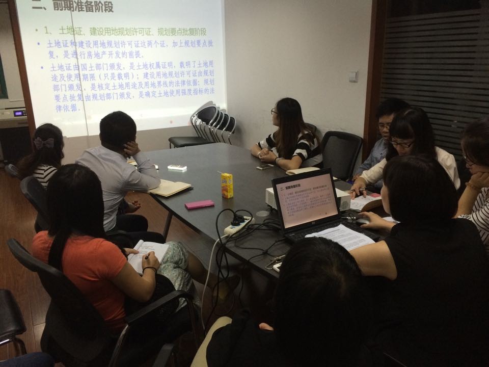 2014年9月25日,公司組織了房地產(chǎn)開(kāi)發(fā)經(jīng)營(yíng)培訓(xùn),主講人為咨詢(xún)部楊敏。主要從項(xiàng)目決策階段、前期準(zhǔn)備階段、工程建設(shè)階段、項(xiàng)目銷(xiāo)售階段、交付使用階段分別進(jìn)行了講解。講解通過(guò)理論與實(shí)例結(jié)合的方式,內(nèi)容詳盡充實(shí),主講人與評(píng)估人員互通交流,現(xiàn)場(chǎng)氣氛熱烈。