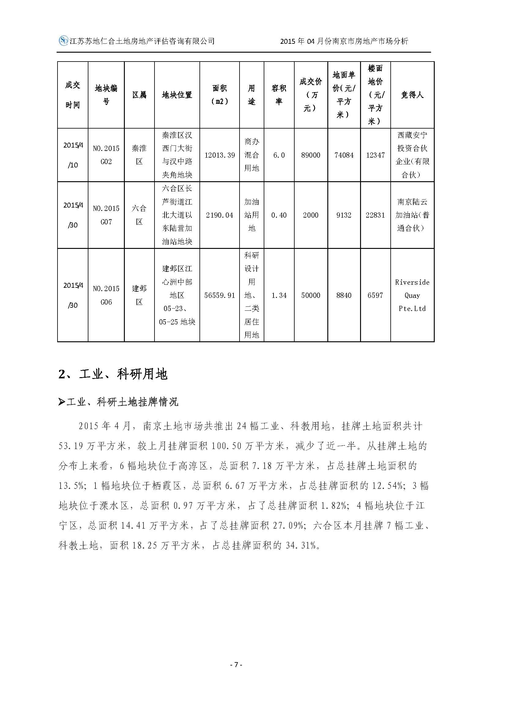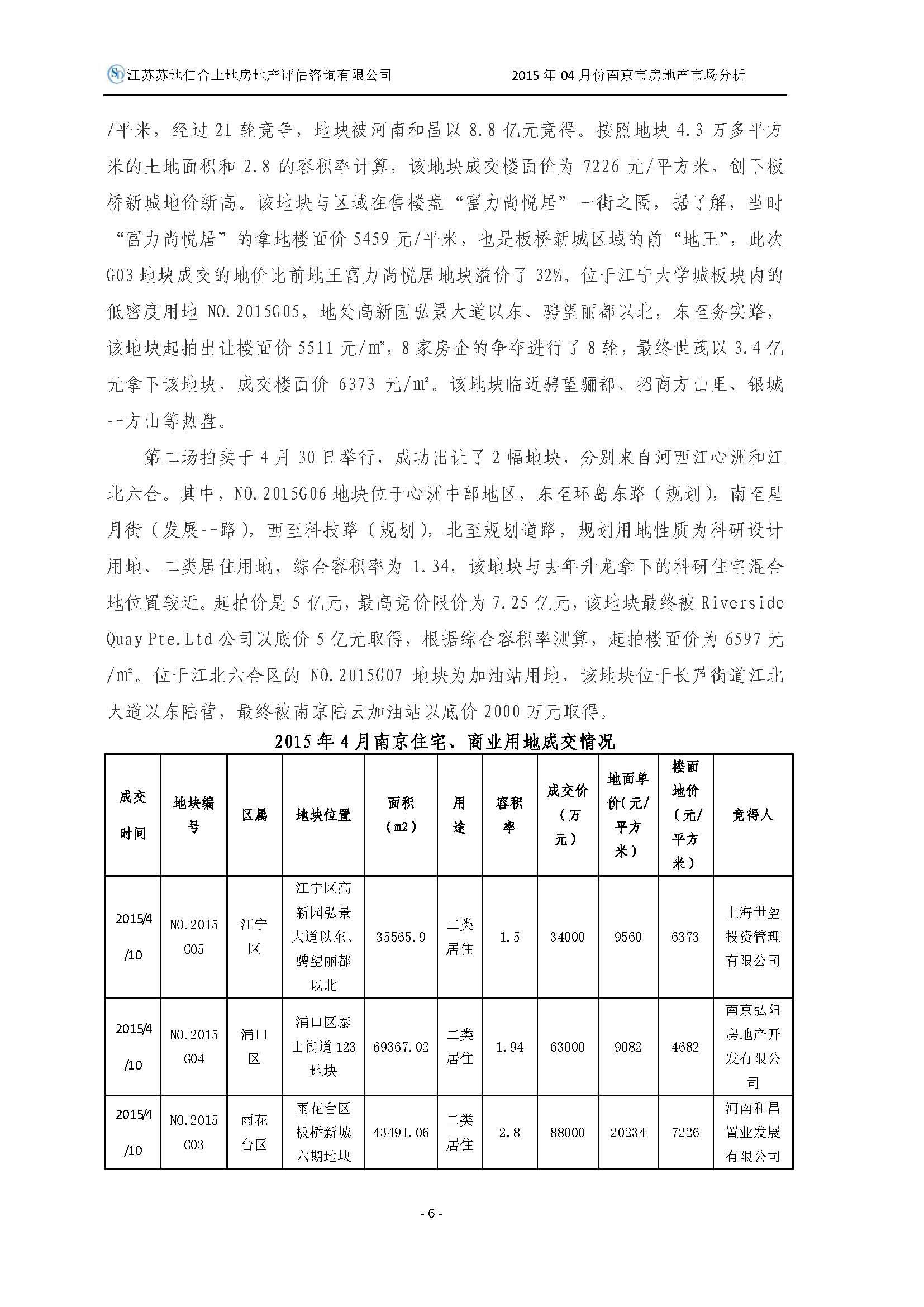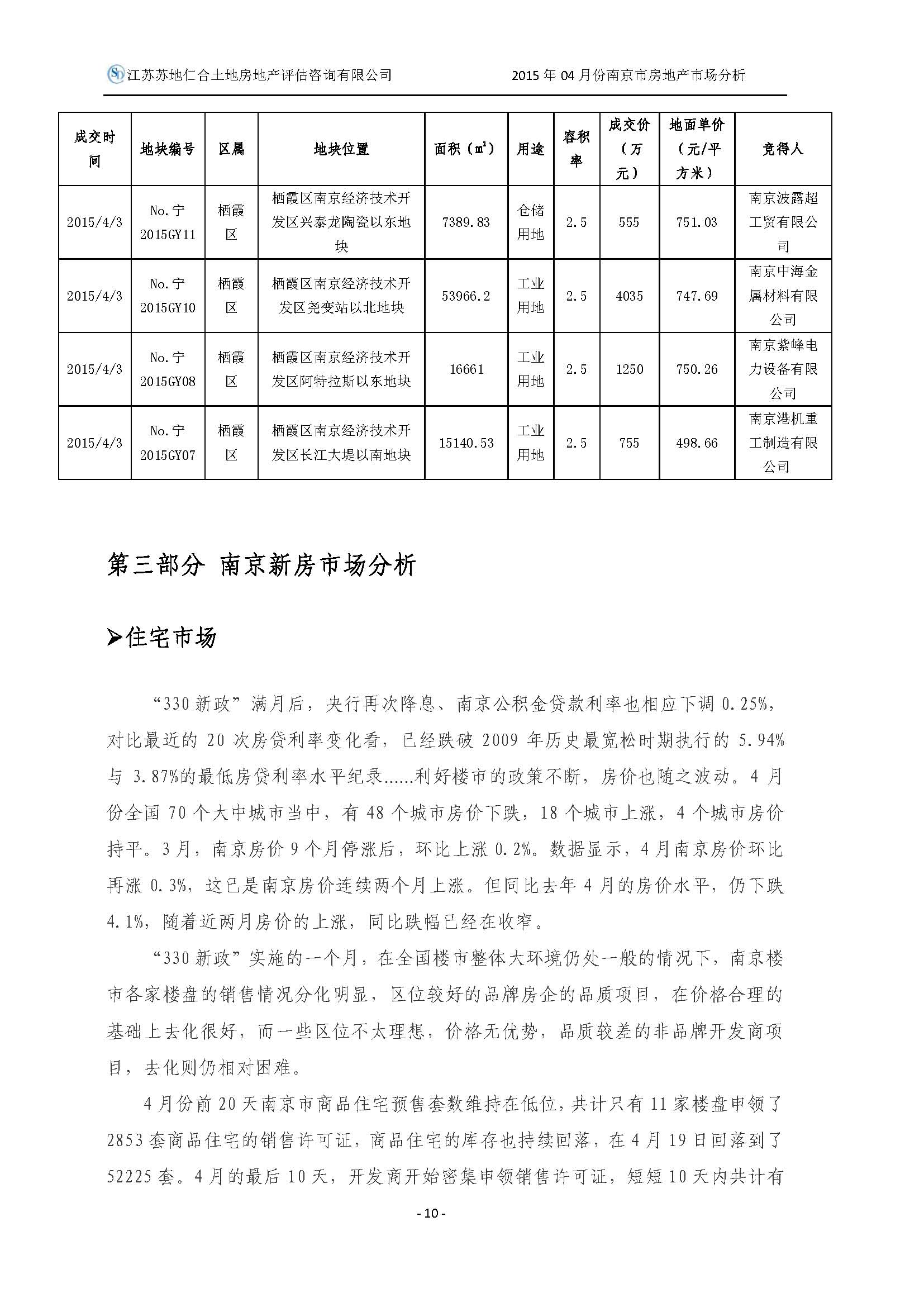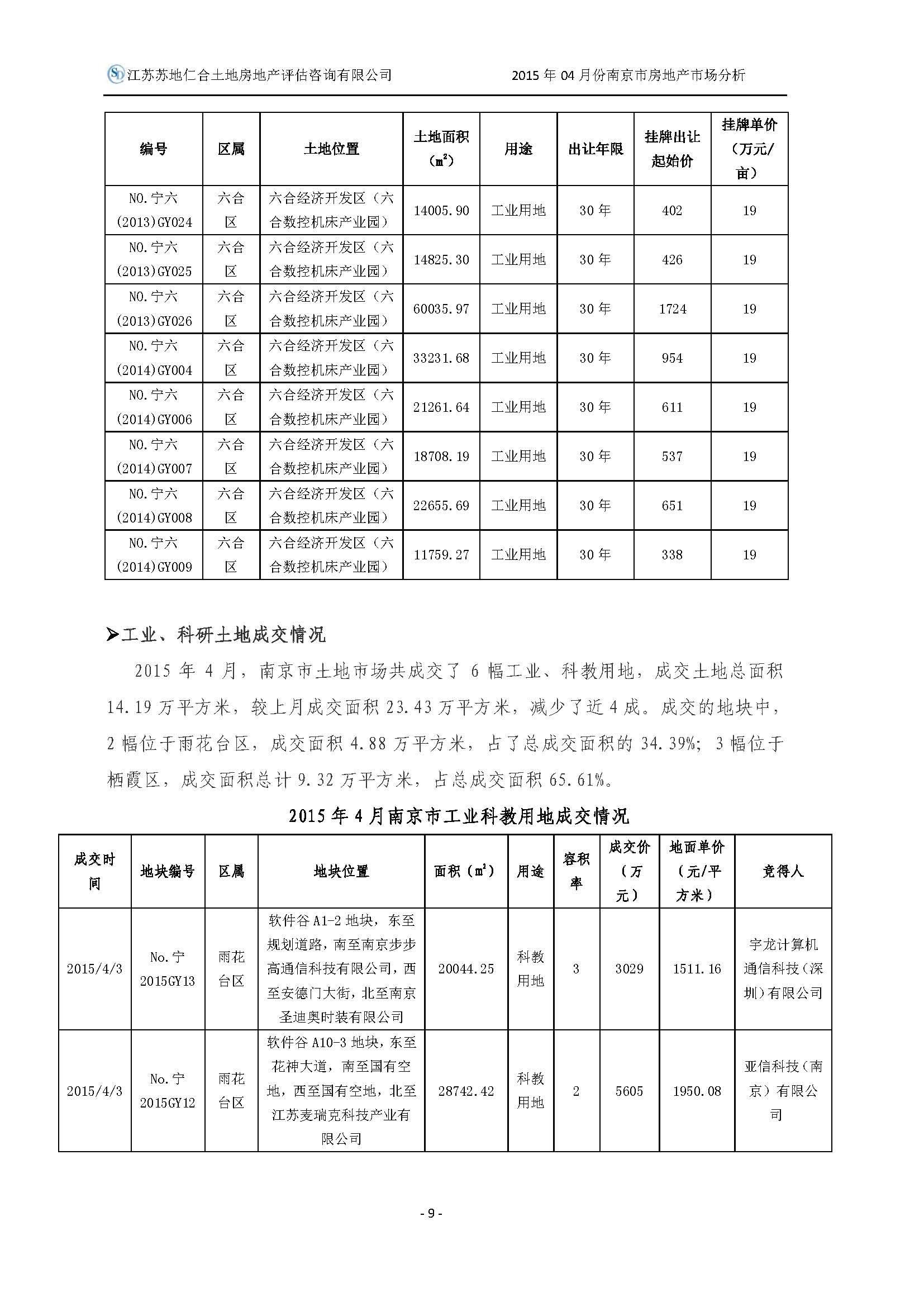 2015年4月南京市土地房地產(chǎn)市場分析報告